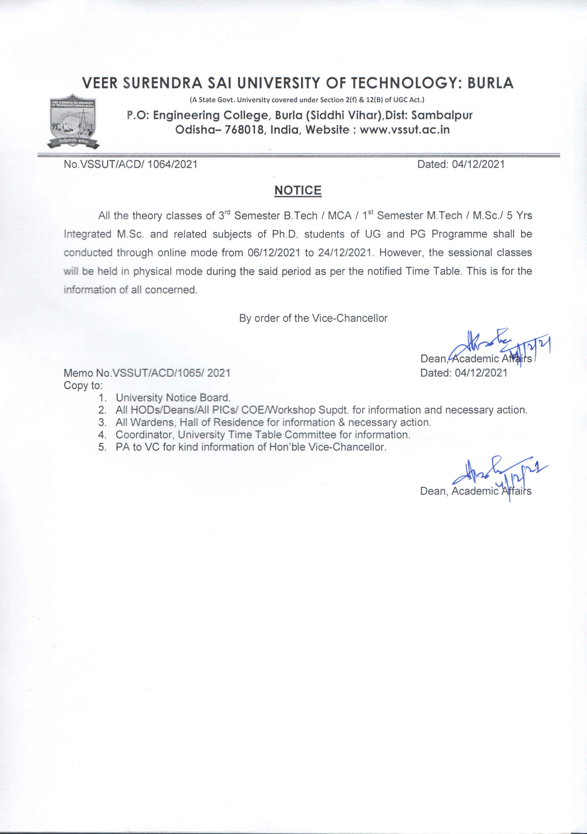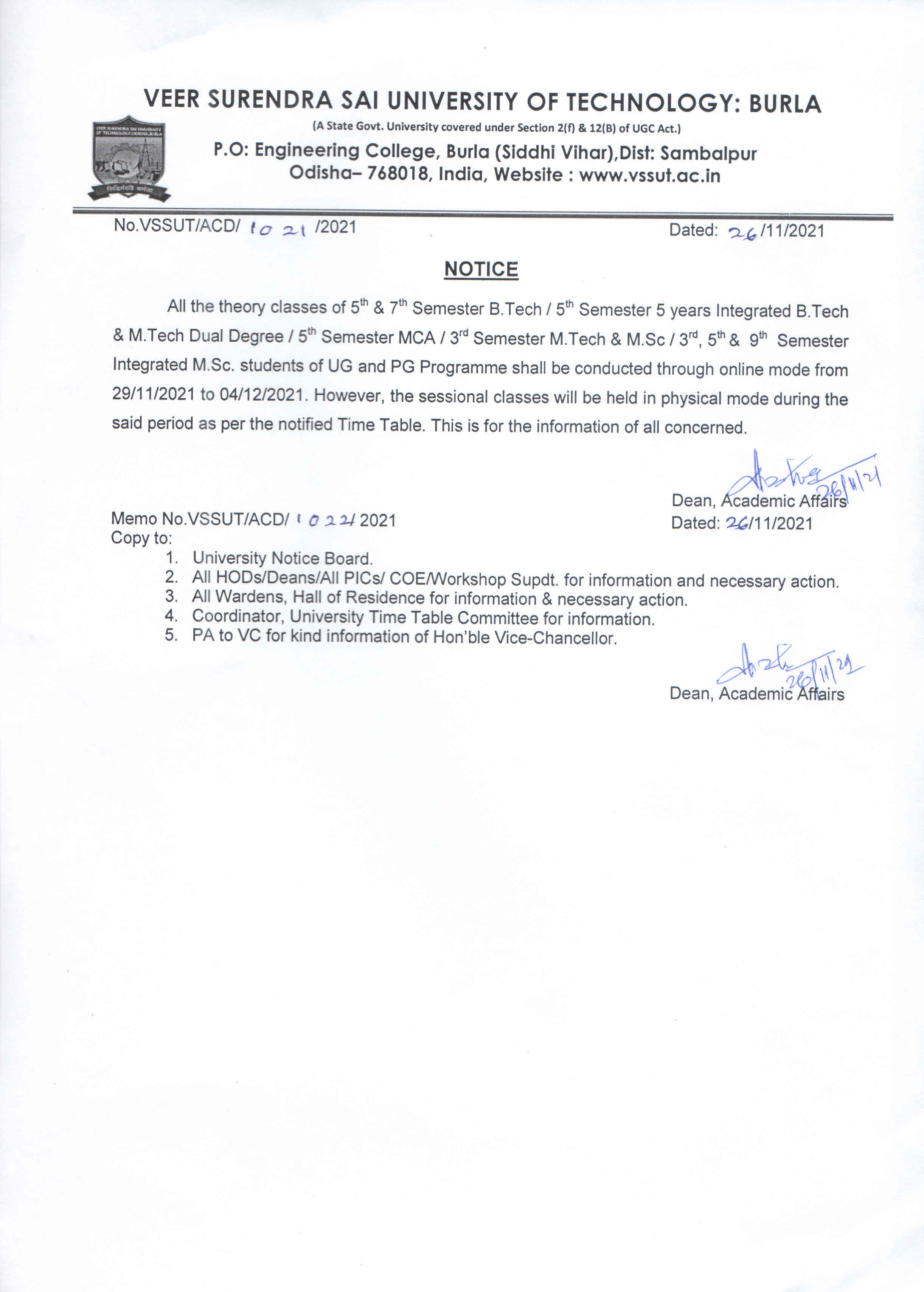 Notice for online classes of 5th & 7th Sem. B.Tech/ 5th Sem Dual Degree & MCA/ 3rd Sem M.Tech & M.Sc./ 3rd, 5th, & 9th Sem. Integrated M.Sc. students |