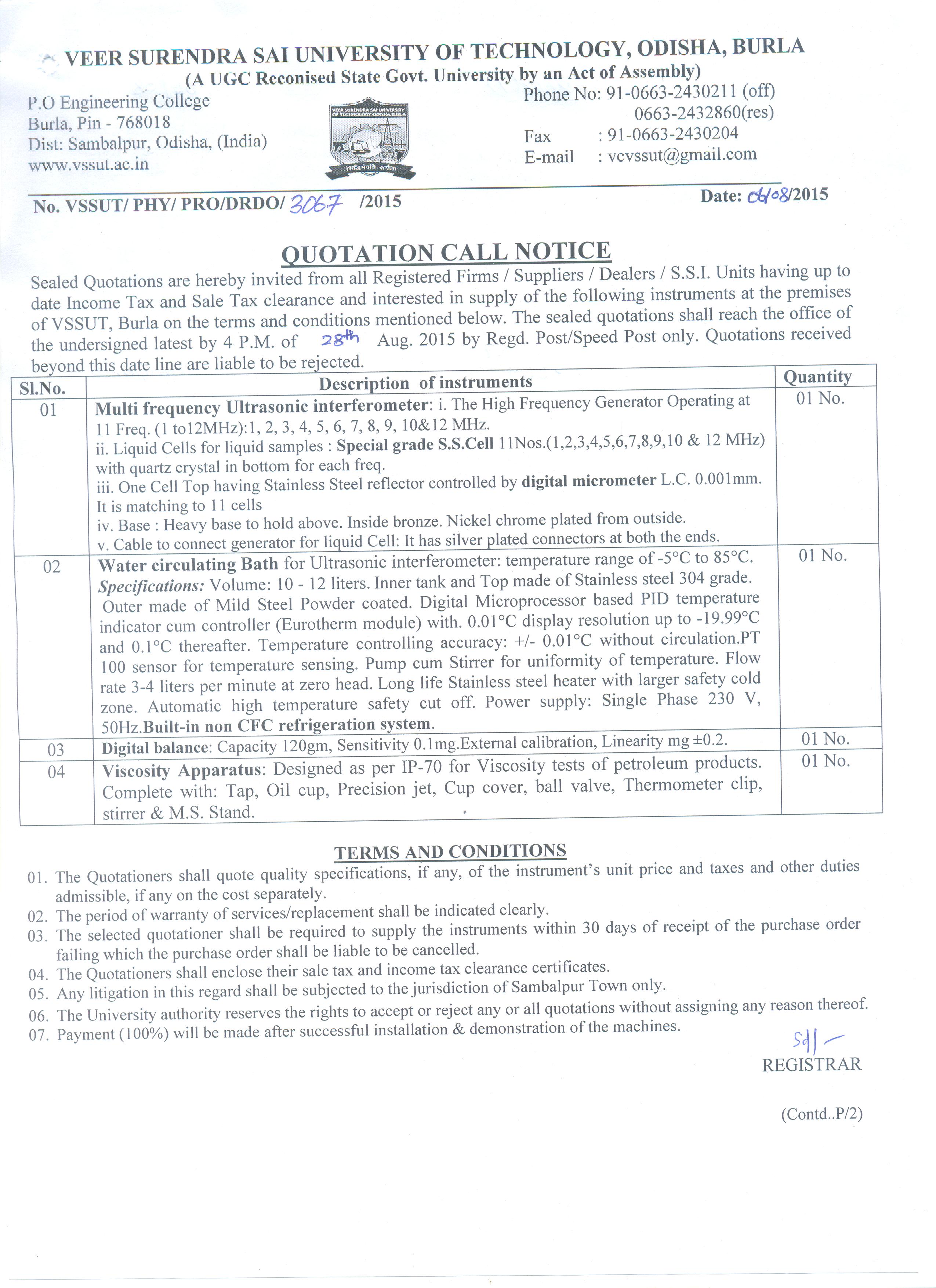 Quotation Call Notice for purchase of laboratory equipment of Chemical Engg. Dept. |