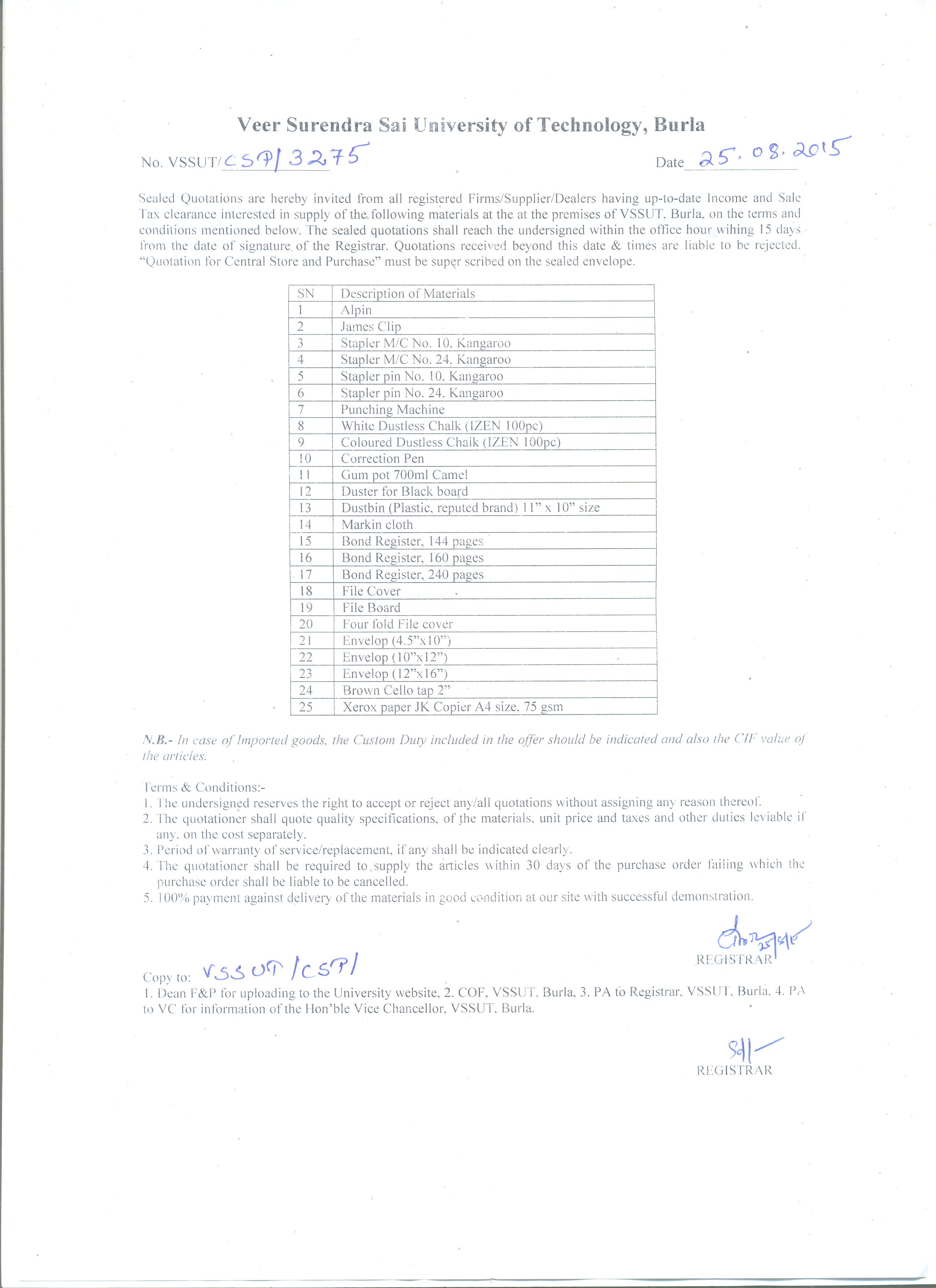 Quotation for Stationary items for Central Store & Purchase |